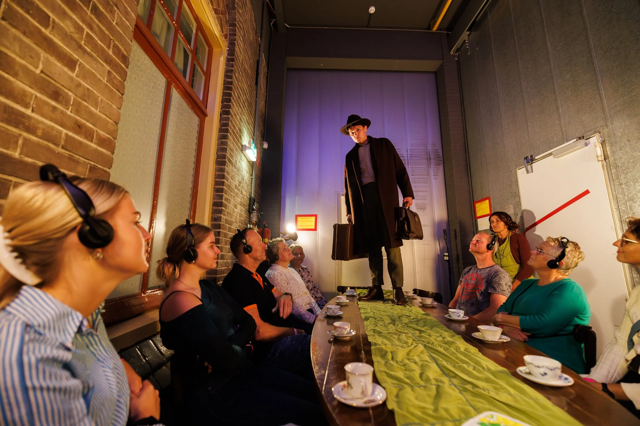 ‘‘Twa minuten foar oanfang is een avontuurlijke audioroute door de backstage van het theater waarbij je onderweg allerhande personages in levenden lijve tegenkomt. Op de reis beland je op magische wijze in het hoofd van acteur Joop Wittermans, en wie weet duikt hij ook nog echt ergens op. ‘Vandaag is het voor het laatst, na 60 jaar spelen is het genoeg geweest’, hoor je hem denken.